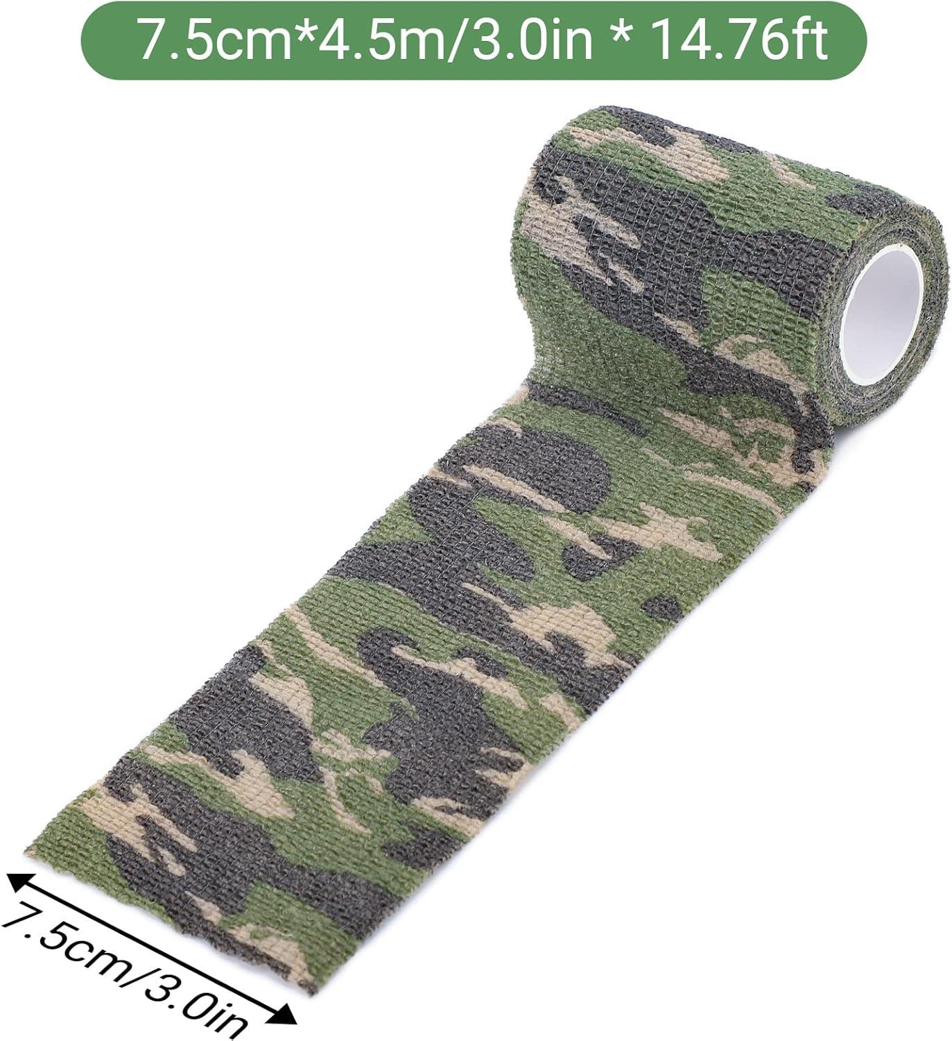 【Functions】 Self-adhesive Camo bandage has many functions. It can make your item more grippy than before which will not easily slip out of your hands. This tape can protect your items from scratch, long-time using. Also camo tape can keep noise down, great accessory to have for outdoor sports, and help you hide better.